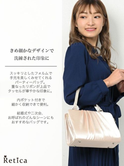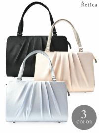 収納力抜群♪ 【お取り寄せ】サテンドレープデザインハンドバッグ(シルバー/ベージュ/ブラック)