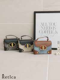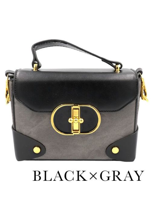 バイカラーフェイクレザースクエア型ミニハンドバッグのディティール画像1