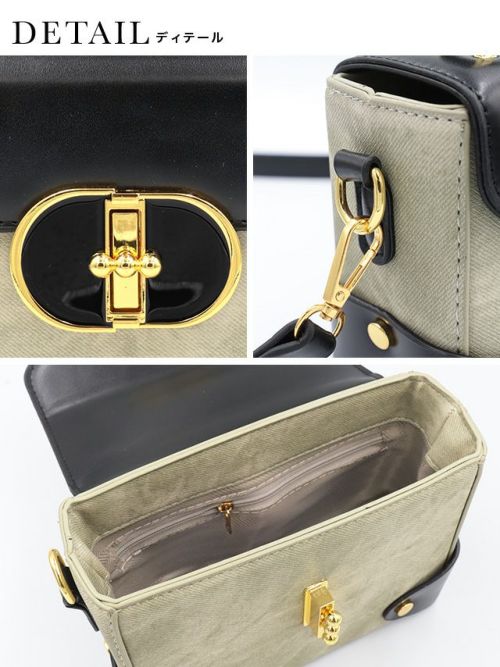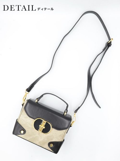 バイカラーフェイクレザースクエア型ミニハンドバッグのディティール画像2