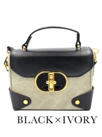 3. バイカラーフェイクレザースクエア型2wayミニハンドバッグ