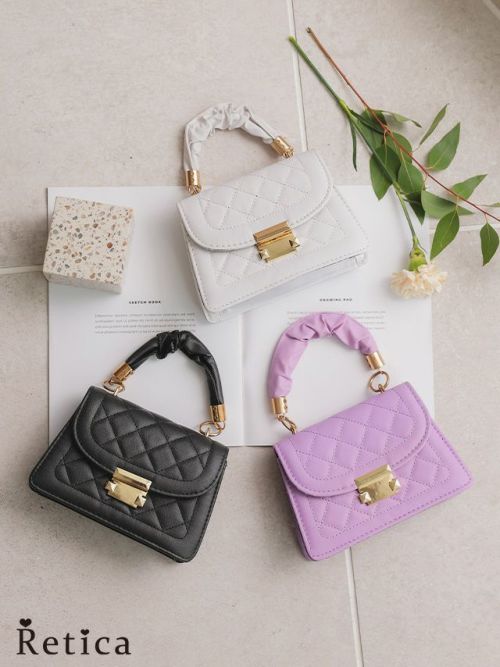 3. 2wayゴールドチェーン付きキルティングハンドバッグ(ブラック/パープル/ホワイト)