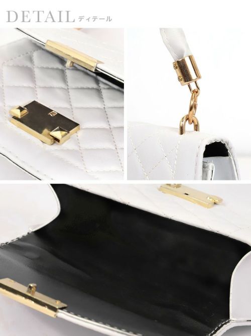 10/28再入荷★ショルダーチェーン付きの上品バッグ♪ 2wayゴールドチェーン付きキルティングハンドバッグ(ブラック/パープル/ホワイト)