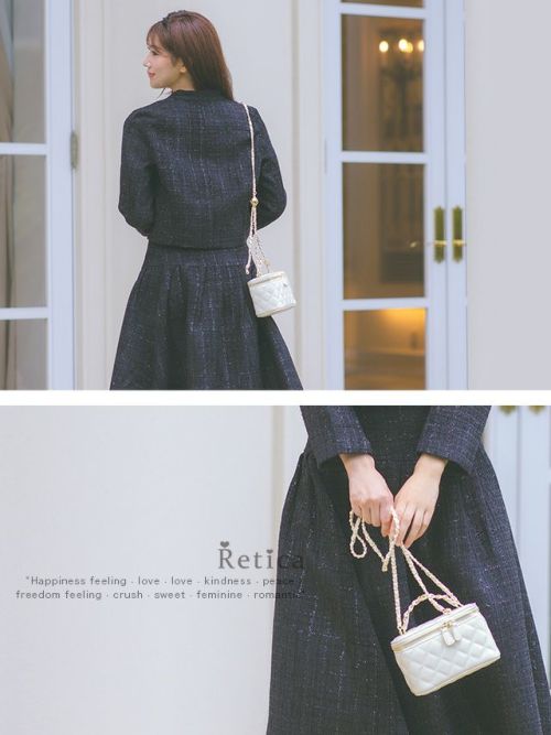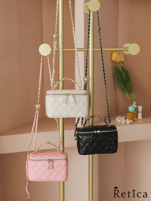 3. キルティングバニティパーティーショルダーバッグ(クリーム/ピンク/ブラック)