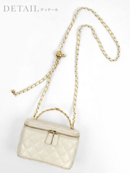 中が見やすい上品バッグ♪ キルティングバニティパーティーショルダーバッグ(クリーム/ピンク/ブラック)