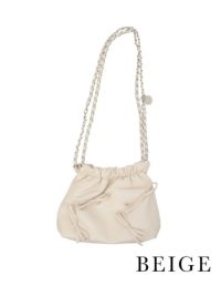 ビジューデザインギャザープリーツ入り2wayバッグ(ベージュ/シルバー/ブラック)