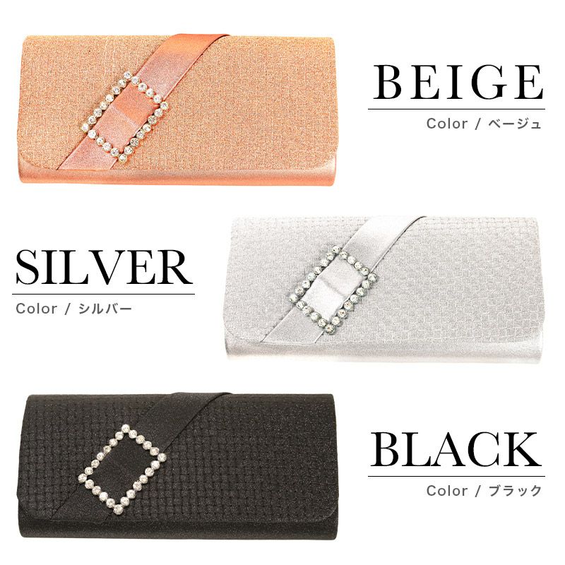 華やかなビジューリボンが目を惹く♪ リボンモチーフビジューデザインサテンパーティーバッグ(グレー/ベージュ/ピンク/ワインレッド/ネイビー/ブラック)