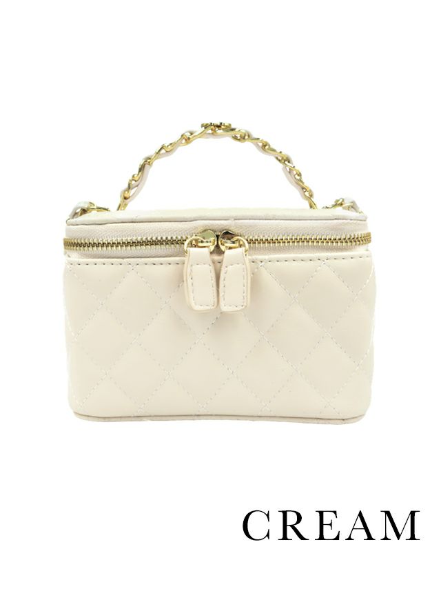 中が見やすい上品バッグ♪ キルティングバニティパーティーショルダーバッグ(クリーム/ピンク/ブラック)