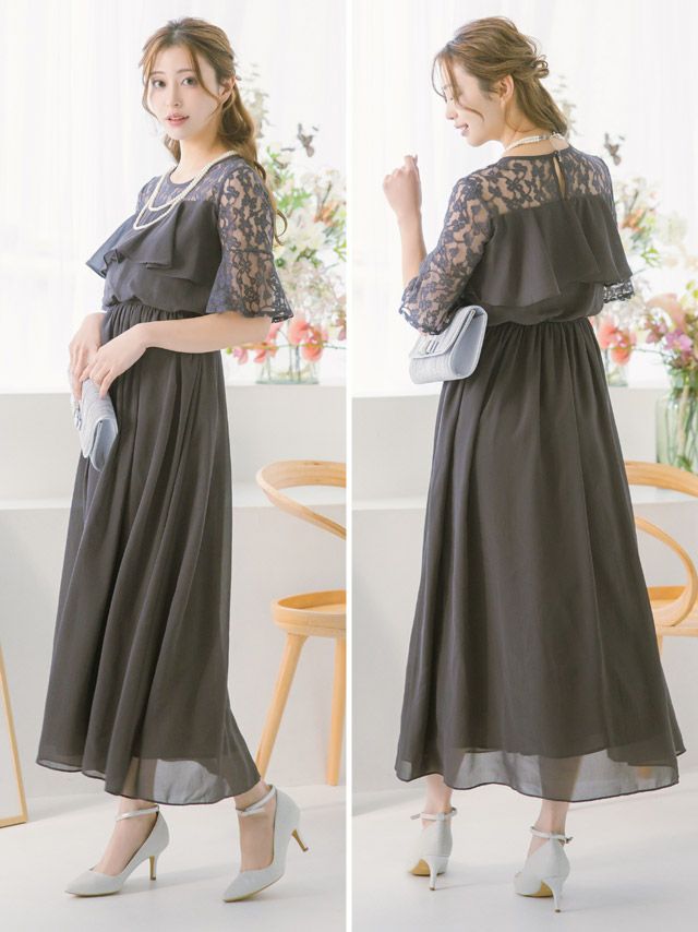 他の画像を見る シフォン×レース切替スカートが魅力的♪ [SALE] チュール5分袖ラウンドネックシフォンレースAラインロングパーティーワンピースドレス (Sサイズ~4Lサイズ) 通常価格 ¥ 15,290 のところ ¥ 7,590 税込 カートに入れる