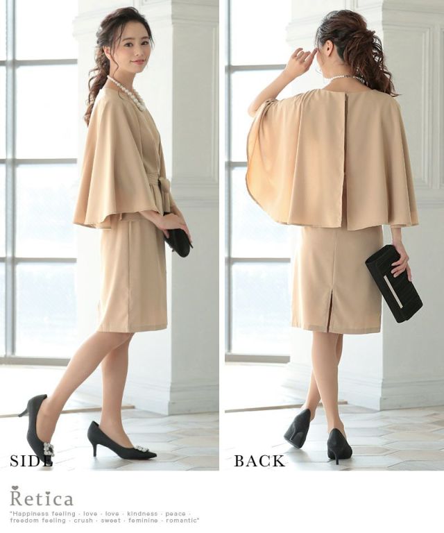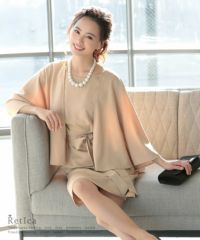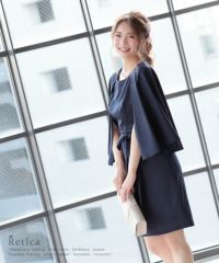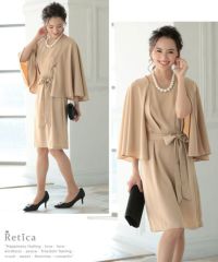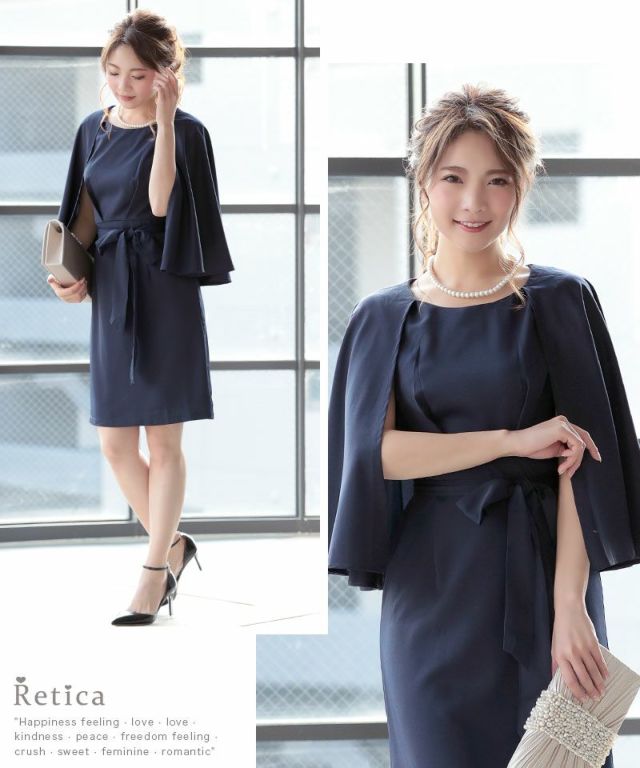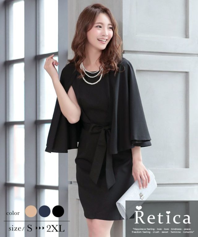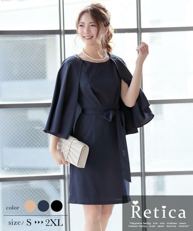 ドレープケープで賢く体型カバー♪ ドレープケープ七分袖ウエストリボンミニパーティードレス (Sサイズ~XXLサイズ)