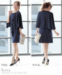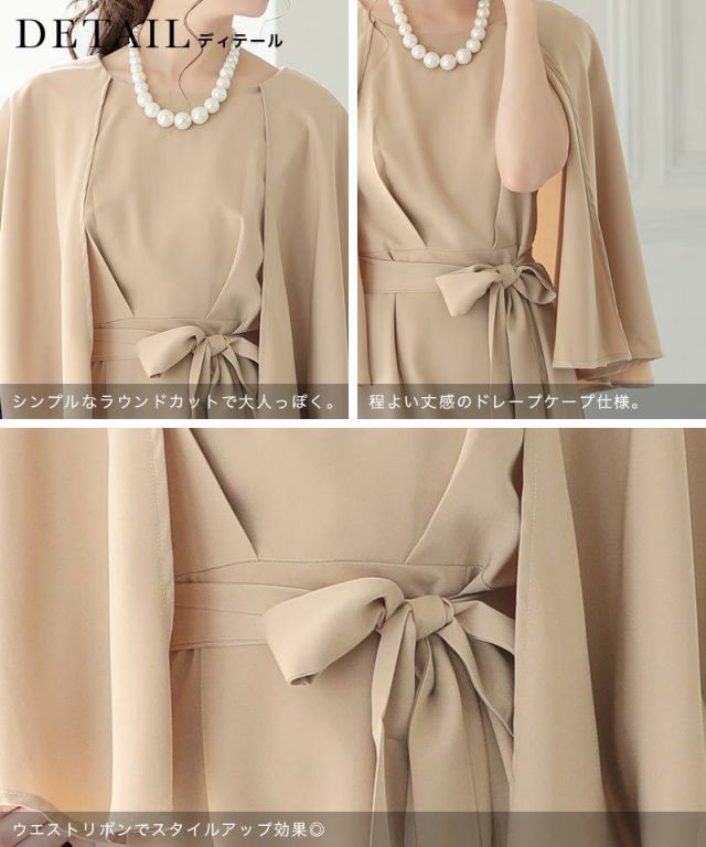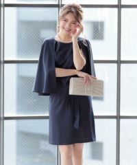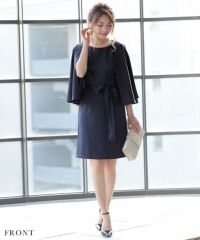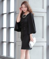 ドレープケープ七分袖ウエストリボンミニパーティードレスの商品詳細1