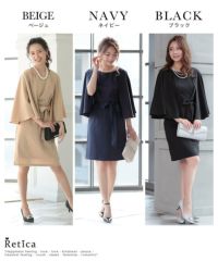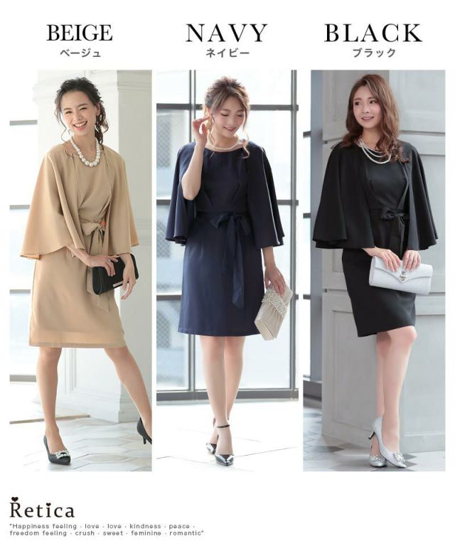 ドレープケープ七分袖ウエストリボンミニパーティードレスのカラーバリエーション