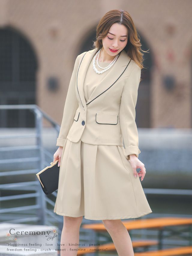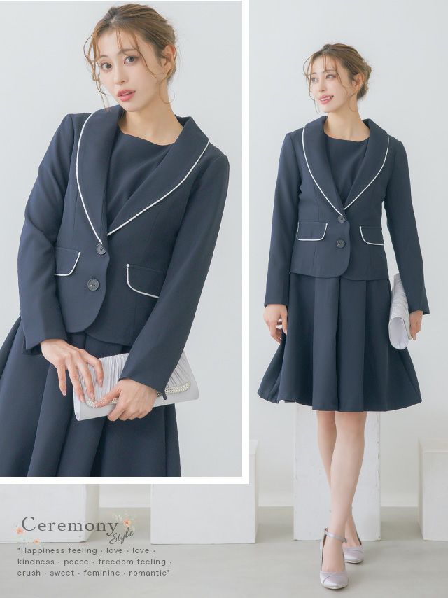 他の画像を見る 単品でもそれぞれ使い回し万能♪ [SALE] パイピングテーラードジャケット半袖ワンピースセレモニースーツ (Sサイズ~XXLサイズ) 通常価格 ¥ 17,380 のところ ¥ 8,690 税込 カートに入れる