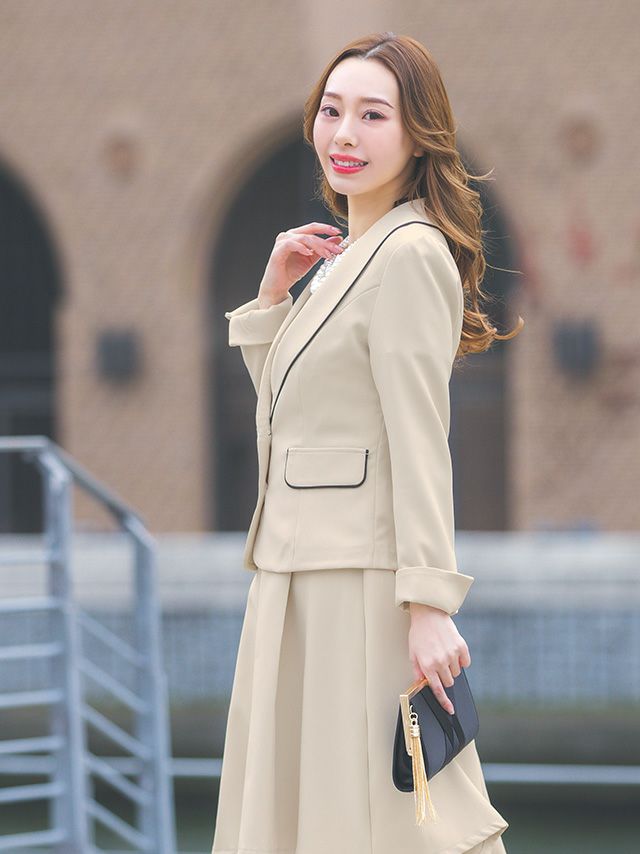 他の画像を見る 着るだけで高見え&スタイルアップの技ありデザイン♪ [SALE] ワンピーススーツセットアップパイピングデザインセレモニースーツ (Sサイズ~XXLサイズ) 通常価格 ¥ 17,380 のところ ¥ 8,690 税込 カートに入れる