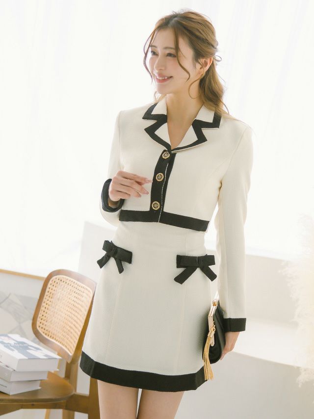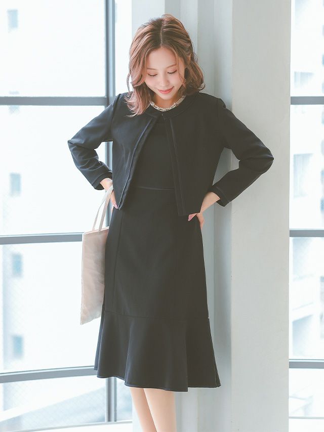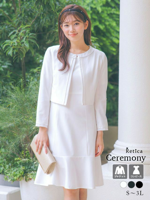 他の画像を見る パネルラインで美シルエットに [SALE] ワンカラーミニ丈ジャケットセットパネルラインワンピースセレモニースーツ (S~XXLサイズ) (ホワイト/ネイビー/ブラック) 通常価格 ¥ 17,380 のところ ¥ 9,790 税込 カートに入れる
