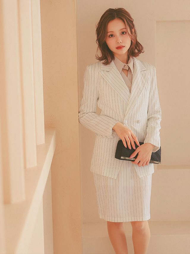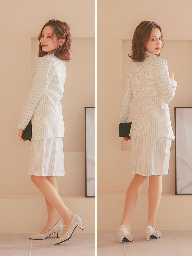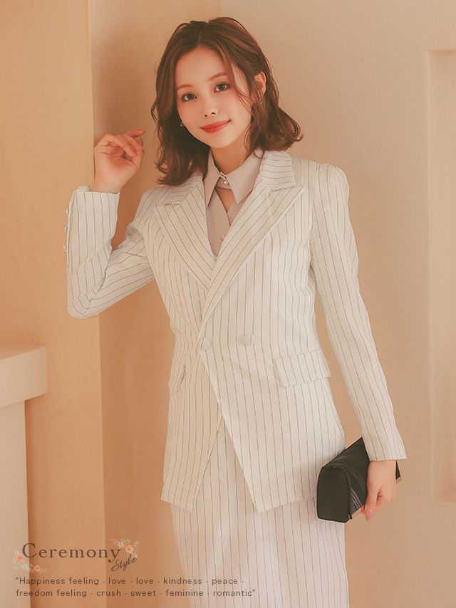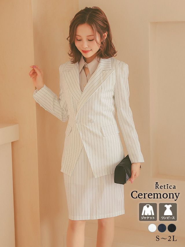 他の画像を見る 着痩せ効果◎美シルエットスーツ♪ [SALE] ストライプジャケット&タイトスカートワンピース セットアップセレモニースーツ (S~XLサイズ) (ホワイト/ネイビー/ブラック) 通常価格 ¥ 10,780 のところ ¥ 4,290 税込 詳細を見る