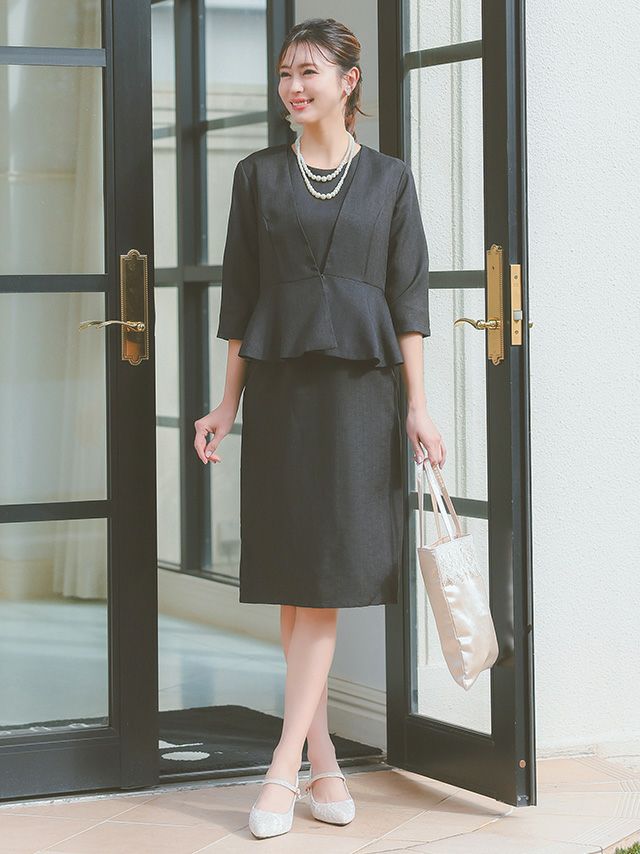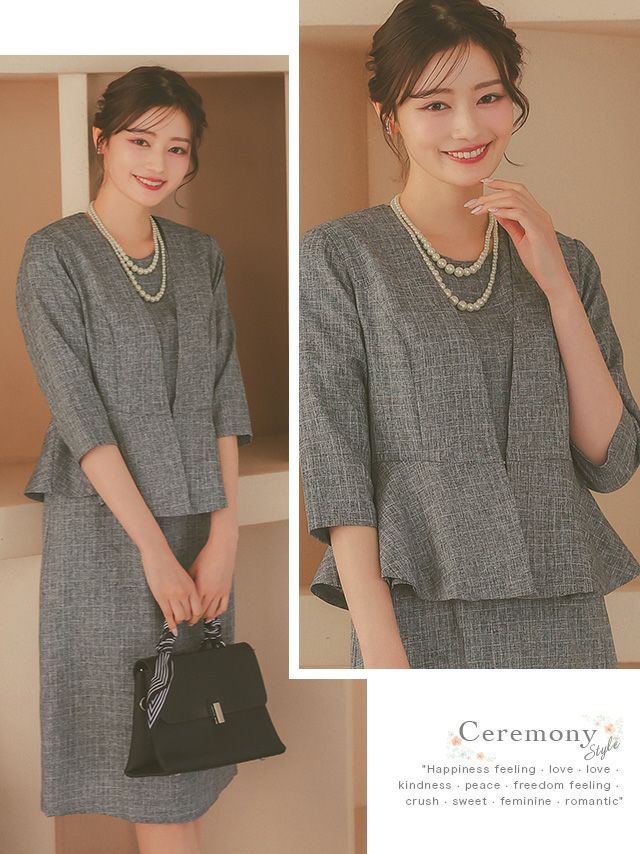 他の画像を見る 女性らしいシルエットを叶えるセレモニースーツ♪ [SALE] ペプラムジャケット×半袖ウエストフリルワンピースセットアップセレモニースーツ (S~3Lサイズ) 通常価格 ¥ 13,200 のところ ¥ 10,780 税込 カートに入れる