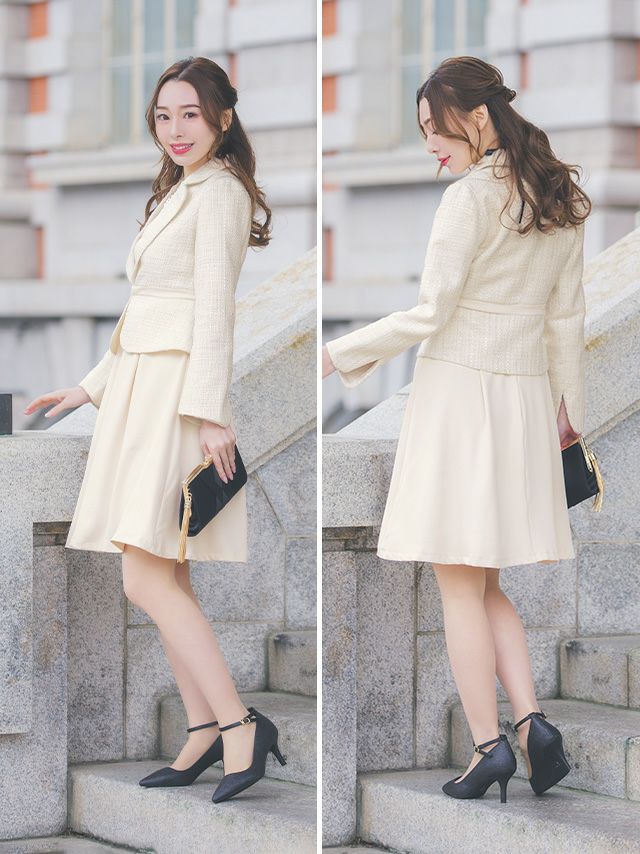 他の画像を見る 着回し力抜群のガーリースーツデザイン♪ [SALE] ツイードジャケットセットワンピースセレモニースーツ (Sサイズ~XXLサイズ) 通常価格 ¥ 17,380 のところ ¥ 9,900 税込 カートに入れる