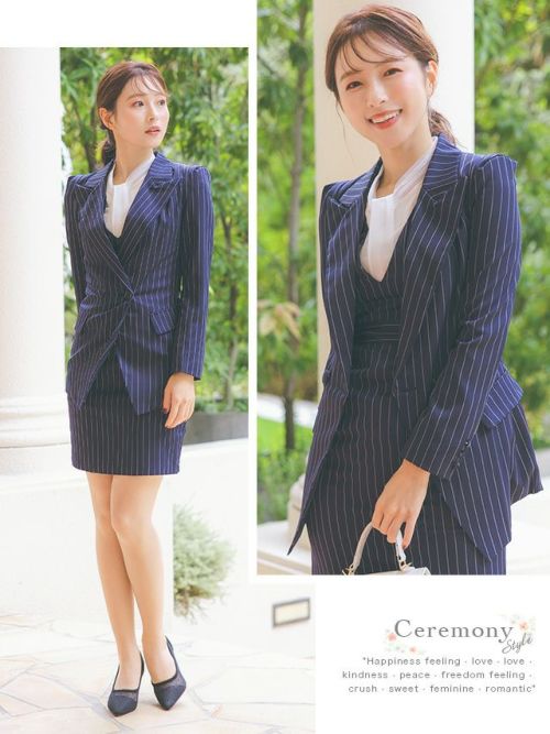 ストライプジャケット&タイトスカートワンピーススーツ(ネイビー)のジャケットありイメージ画像