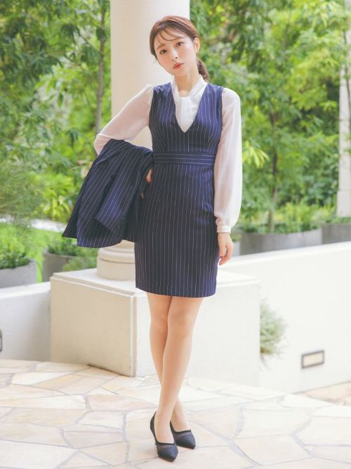 ストライプジャケット&タイトスカートワンピーススーツ(ネイビー)のイメージ画像2