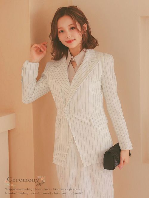 5. [SALE] ストライプジャケット&タイトスカートワンピース セットアップセレモニースーツ (S~XLサイズ) (ホワイト/ネイビー/ブラック)