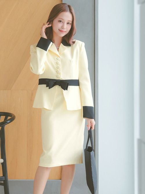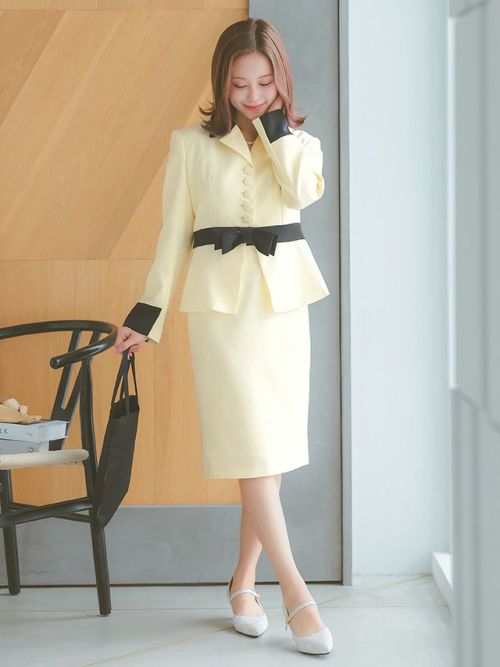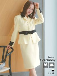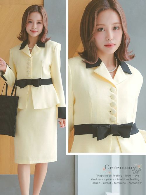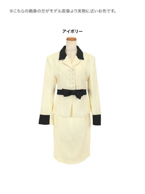 3. [SALE] バイカラーウエストリボンセットアップタイトスカートセレモニースーツ (Sサイズ~3Lサイズ) (アイボリー)