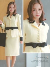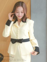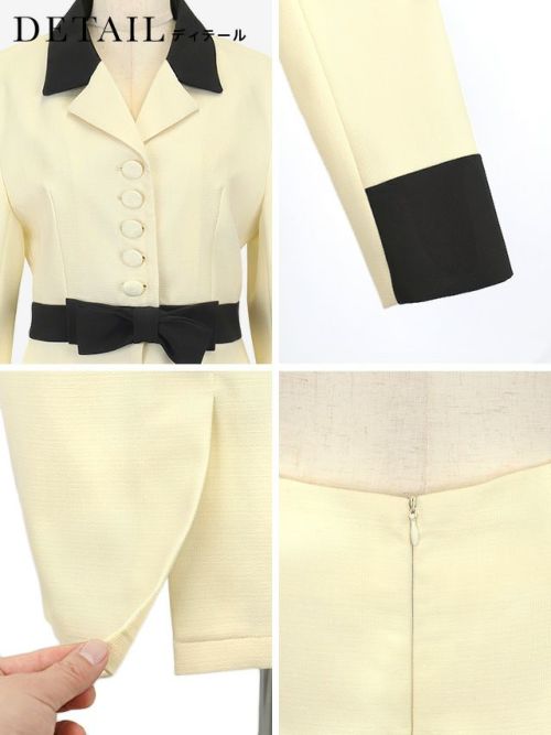 4. [SALE] バイカラーウエストリボンセットアップタイトスカートセレモニースーツ (Sサイズ~3Lサイズ) (アイボリー)