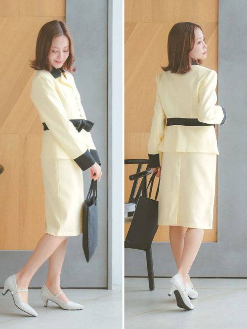 アシンメトリーデザインセットアップスカートスーツのカラーバリエーション
