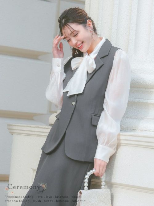 ワンカラーベスト+フレア膝丈スカートセットアップセレモニースーツの商品詳細1