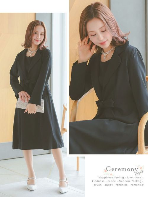 3. [SALE] リボン付きジャケットセットタックワンピースセレモニースーツ (S~XXLサイズ)