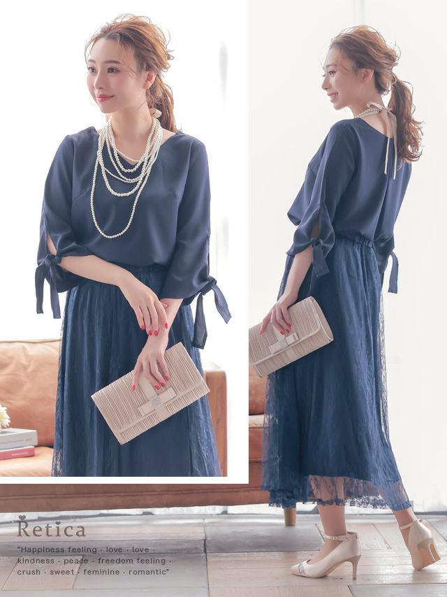 ツーピースワンカラー袖ありレースフレアロングスカートプチプラパーティードレスのスペック表