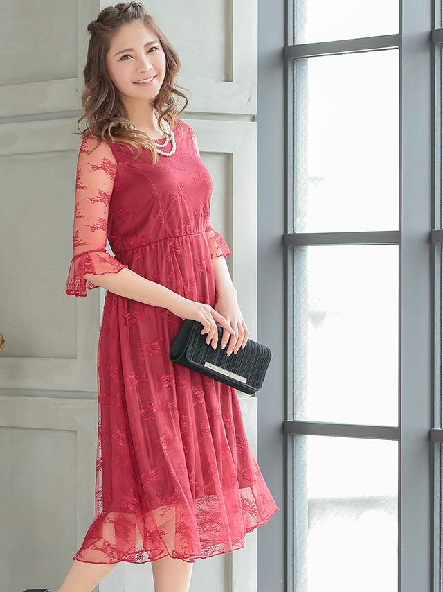 他の画像を見る 在庫切れ 揺れるレースで可愛らしく(^^) 総レースベルスリーブ膝丈フレアスカートパーティードレス (Sサイズ~XXLサイズ) [パールネックレス付き] ¥ 8,690 税込 カートに入れる