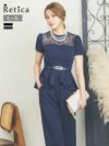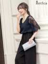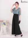 シンプルスタイルアップドレス♪ [SALE] チュールレーストップスウエスト切替シフォンワイドパンツパーティードレス (Sサイズ~4Lサイズ) (小澤美里)[Retica/レティカ]