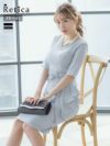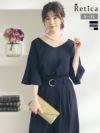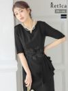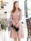 個性的なリボンベルトで人と被らないデザイン [SALE] 総レースパールボタン付きパーティードレス (Sサイズ~3Lサイズ)