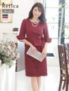 フェミニンな上品ワンピース♪ [SALE] パイピングデザイン総レース袖ありウエストリボンパーティードレス (Sサイズ~3Lサイズ)