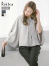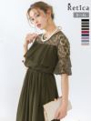 シックなこなれパーティードレス♪ [SALE] チュールレースデザインシフォンギャザーワイドパンツ五分袖パーティードレス (Sサイズ~4Lサイズ)[Retica/レティカ]