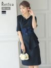 かしこまったオケージョンシーンにぴったり♪ [SALE] ウエスト刺繍×フリル五分袖タイト膝丈スカートパーティードレス (Sサイズ~4Lサイズ)