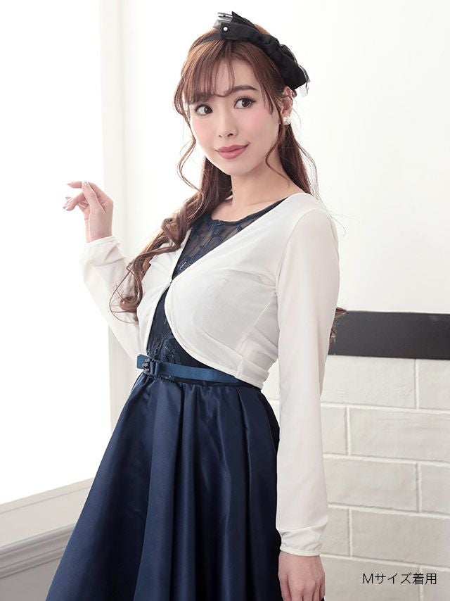 どんなドレスにも合う万能ボレロ♪ ストレッチ素材ストーンホック付きプレーン長袖ボレロ(ホワイト/ブラック)