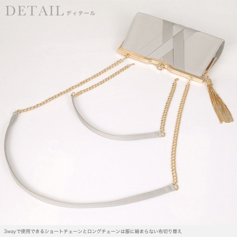 洗練された印象に♪ タッセル付きテープリボンデザイン3Wayパーティーバッグ(ベージュ/グレー/ブラック)