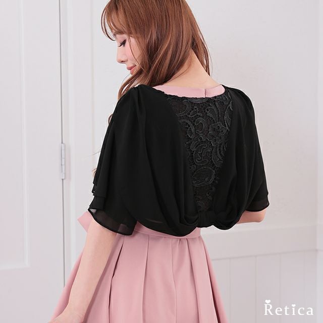 バックレースリボン2重フリルシフォンボレロ
