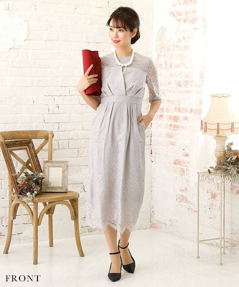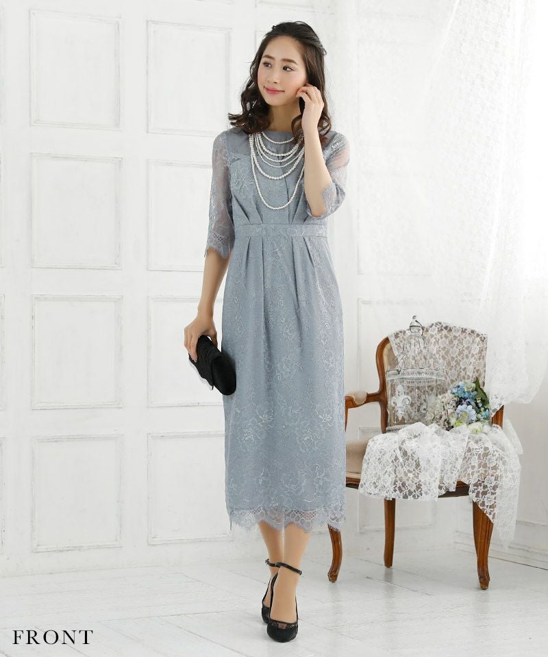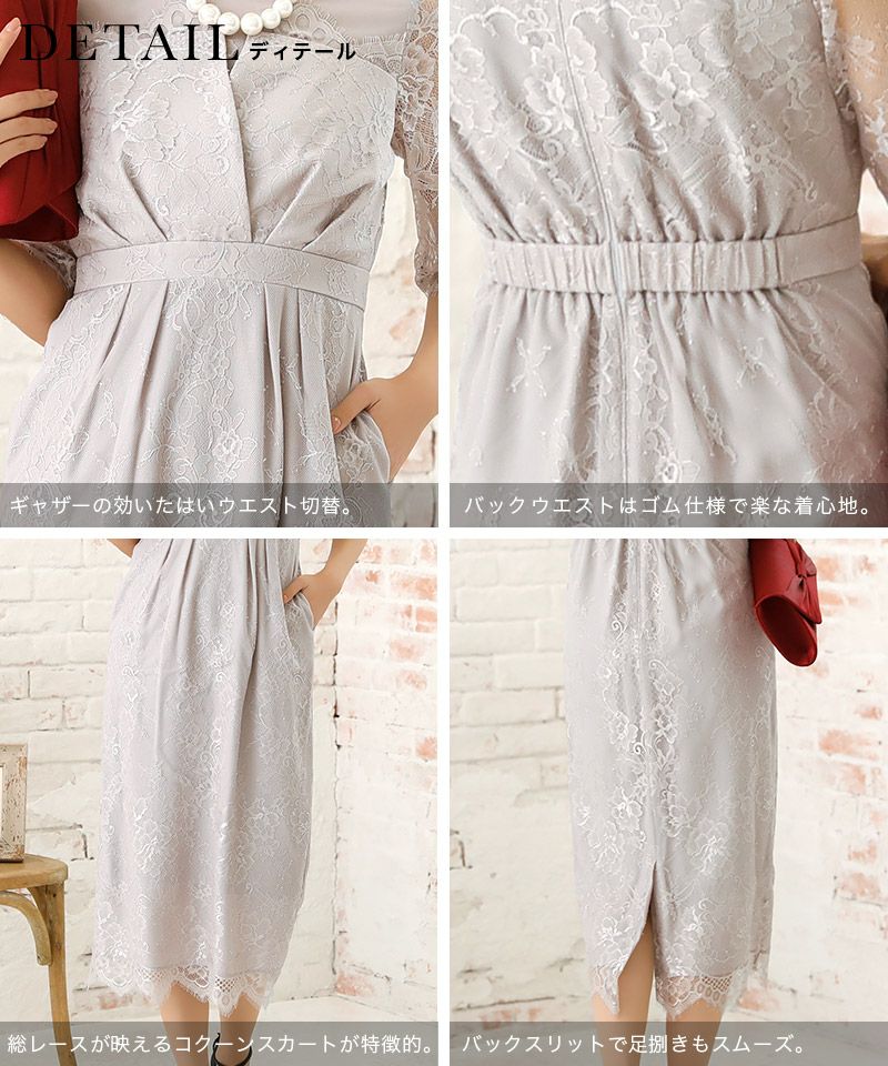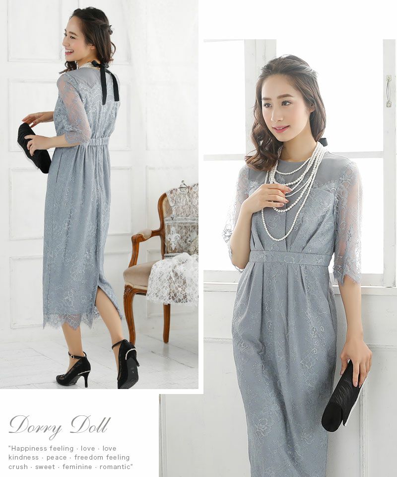 パーティードレス Dorry Doll ドリードール 総レースウエスト切替ギャザーデザインロング丈タイトスカートタイトドレス