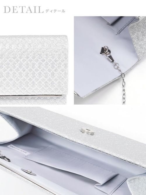 3. チェーンショルダー付きラメ入り型押しデザインクラッチ2Wayバッグ(ホワイト/シルバー/ブラック)