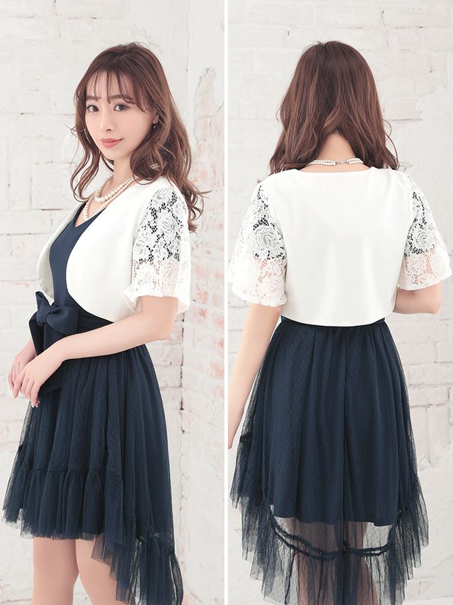 ボレロ 羽織り お呼ばれ レース半袖カットデザインショート丈ボレロ
