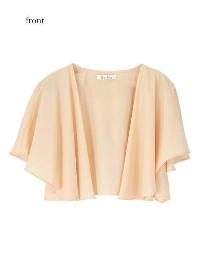 重ねデザインで後ろ姿もお洒落に♪ フリルシルエットドレープデザインショートボレロ(ベージュ)(Mサイズ)