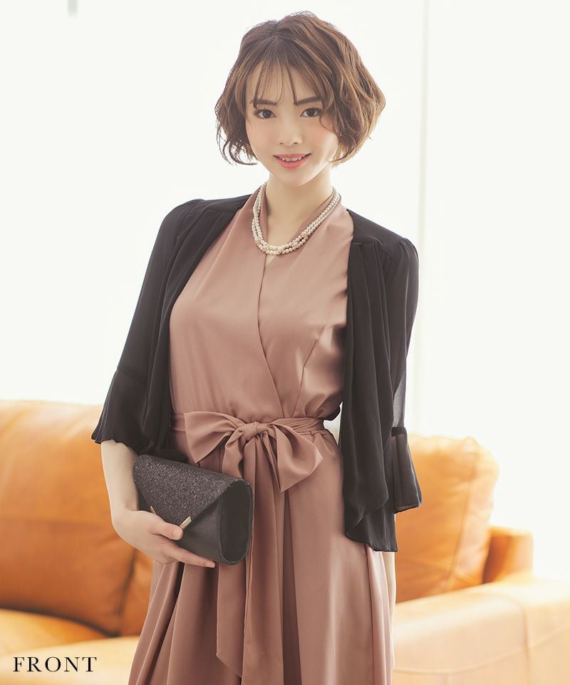 ベルスリーブ切り替えドレープデザインシフォン七分袖ボレロのカラーバリエーション