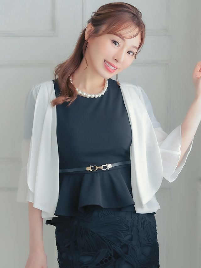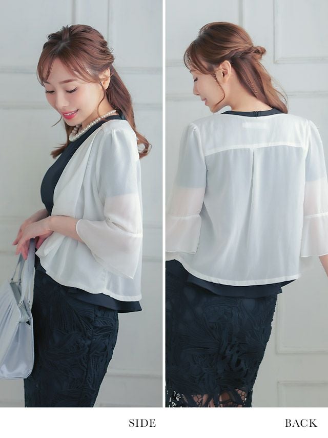 4. ベルスリーブ切り替えドレープデザインシフォン七分袖ボレロ (Mサイズ/Lサイズ)