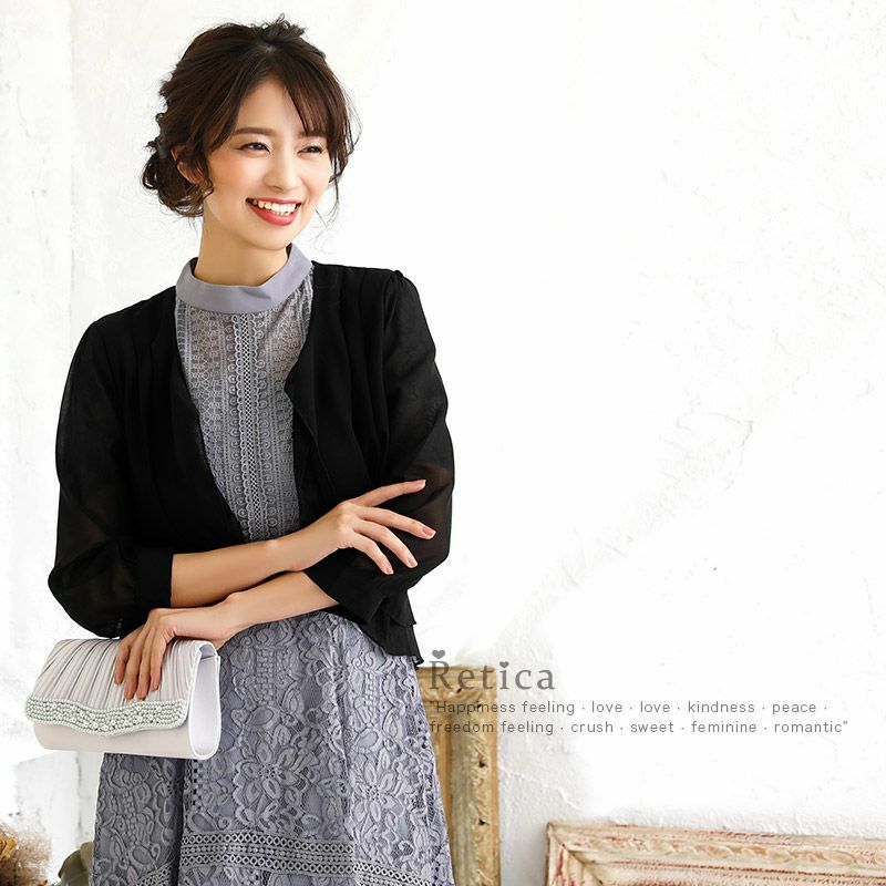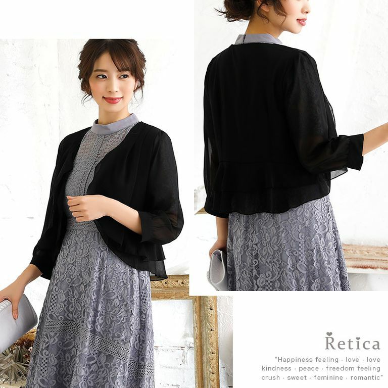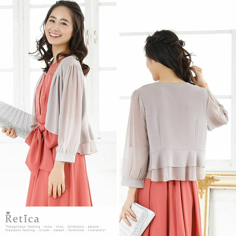 3. 七分袖シフォンボレロ (ベージュ/グレー/ブルー/ブラック)(Lサイズ)