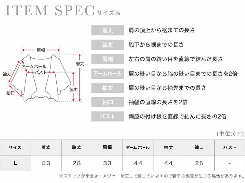脇丈:28cm/着丈:53cm/袖丈:44cm