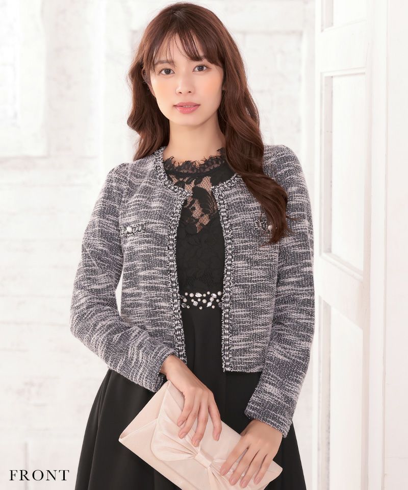 ノーカラー長袖ツイードボレロジャケットの商品詳細1