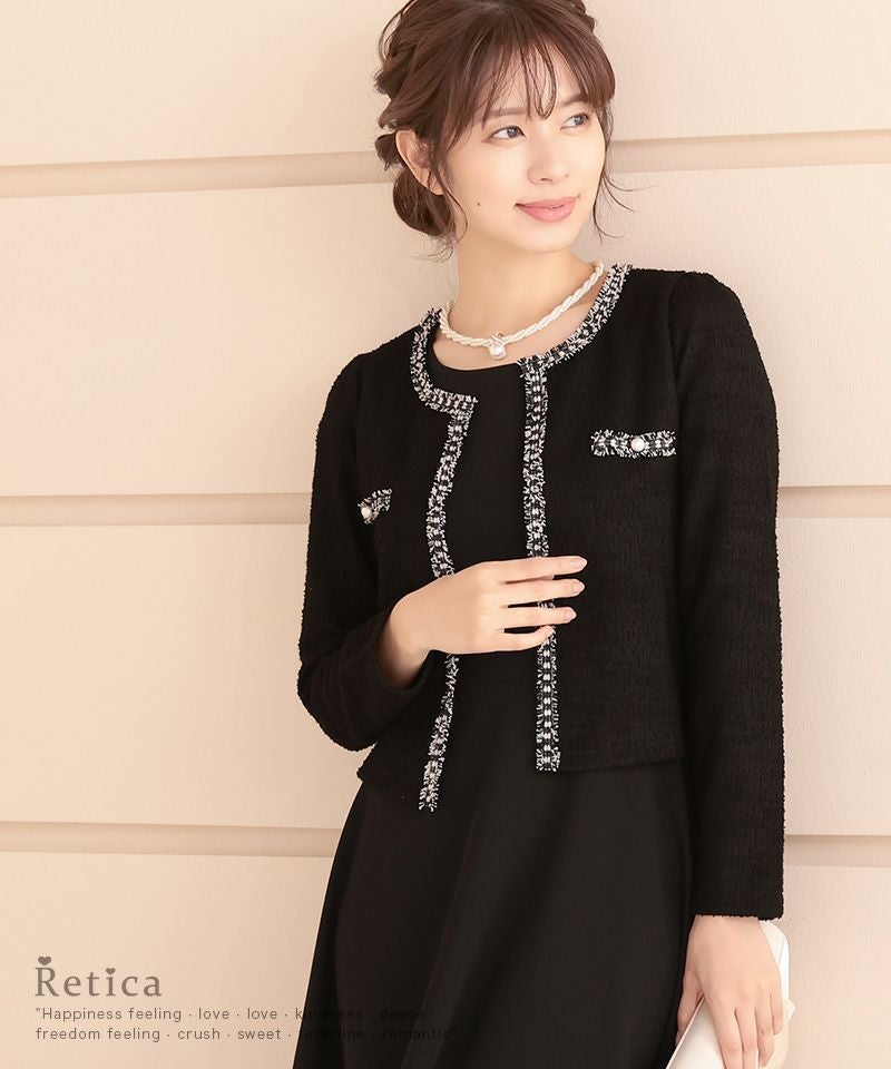 ボレロ 羽織り お呼ばれ ノーカラー長袖ツイードボレロジャケット