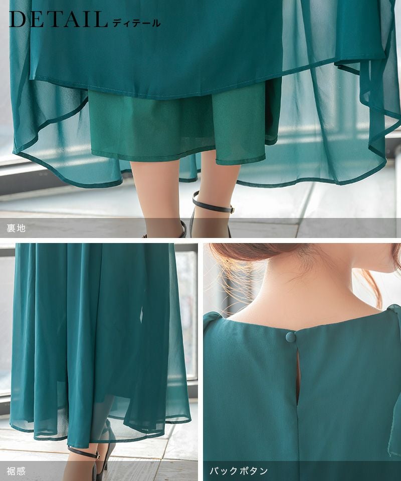 シフォン半袖フリルワンカラーウエスト切替ロングパーティードレスの商品詳細2